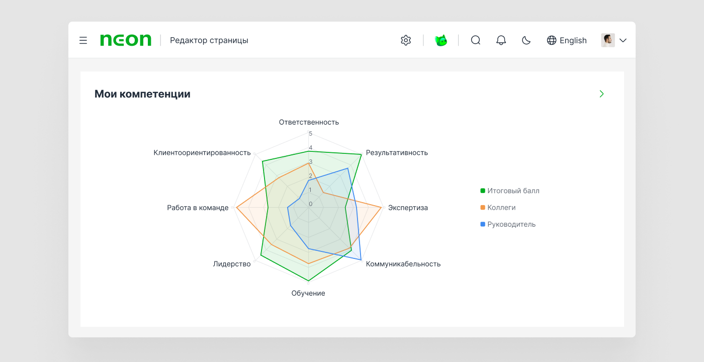 Собирать качественную аналитику в Neon HRM 2.0 стало проще — в каждом модуле доступны улучшенные наборы отчетов. С их помощью можно в любой момент получать структурированные и актуальные данные о кадровом составе, вовлеченности сотрудников и HR-процессах. Так, в модуле «Цели» есть отчеты по статусам целей сотрудников в рамках годового цикла целеполагания, в модуле «ИПР» — по планам развития, а в модуле «Обучение» — по прохождению, доходимости и результатам обучений. Отчеты помогают строить прогнозы, разрабатывать и корректировать стратегии развития персонала.