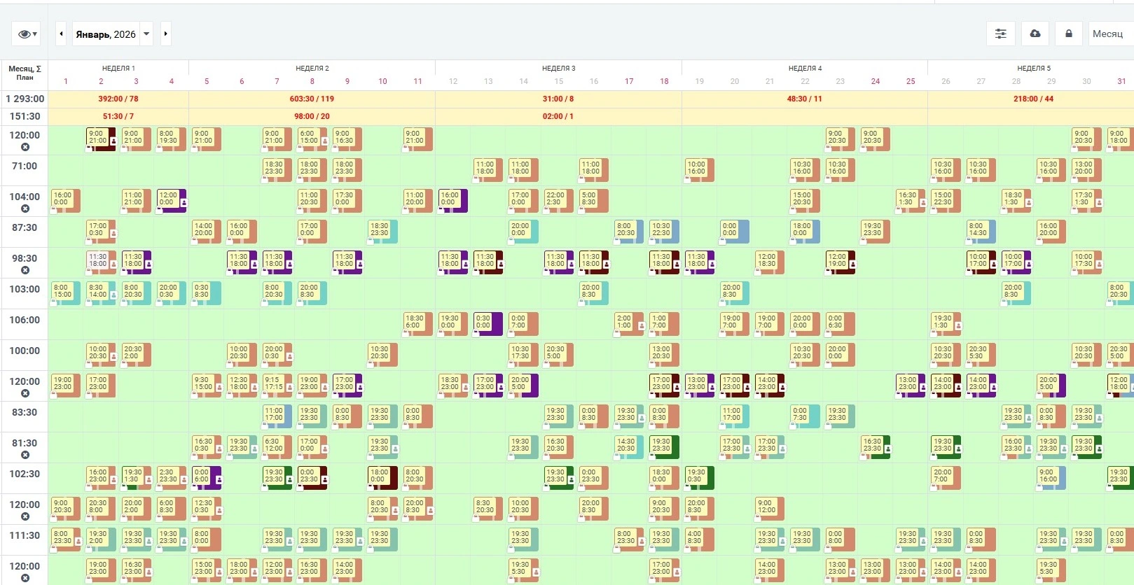 Доступные слоты и их стоимость в LEDcoin-ах отображаются в системе планирования и учета рабочего времени Verme, которую используют в компании.